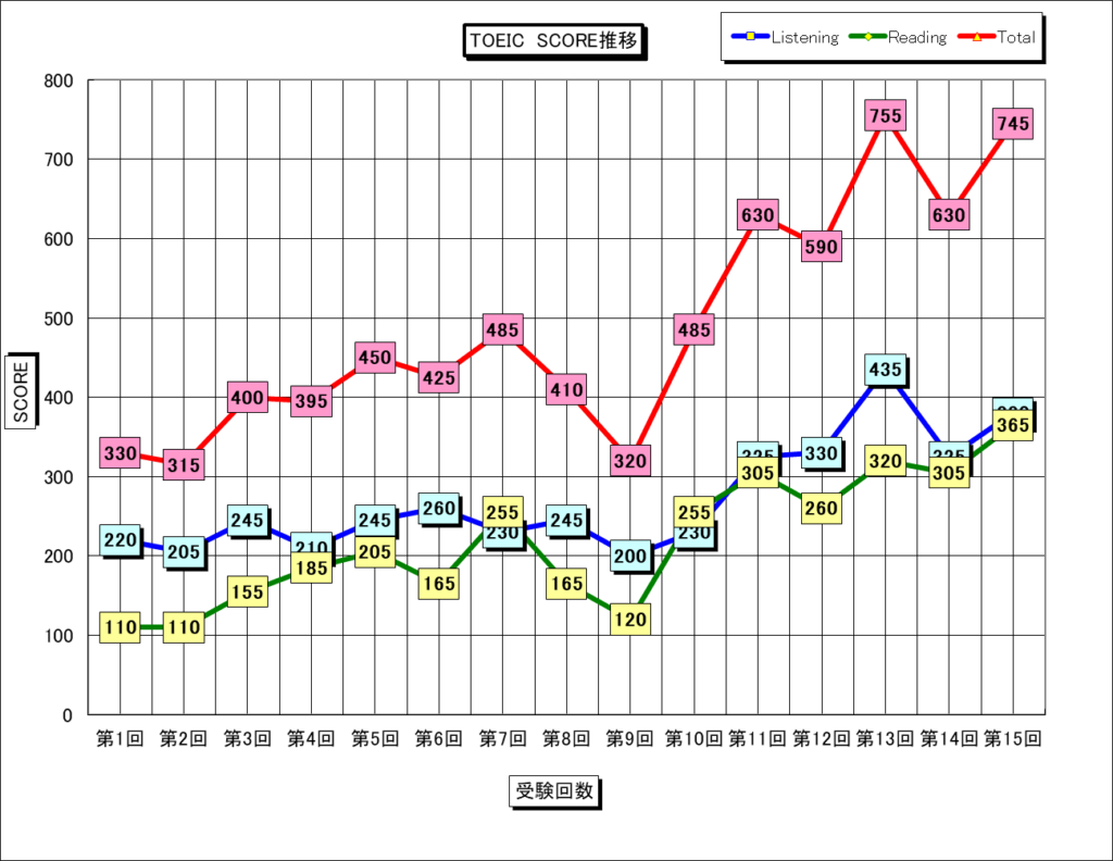 TOEICのスコア推移