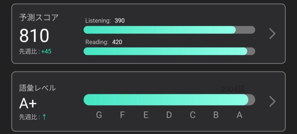 試験直前のAbceedの予想スコアは810点だが、はたして・・・・